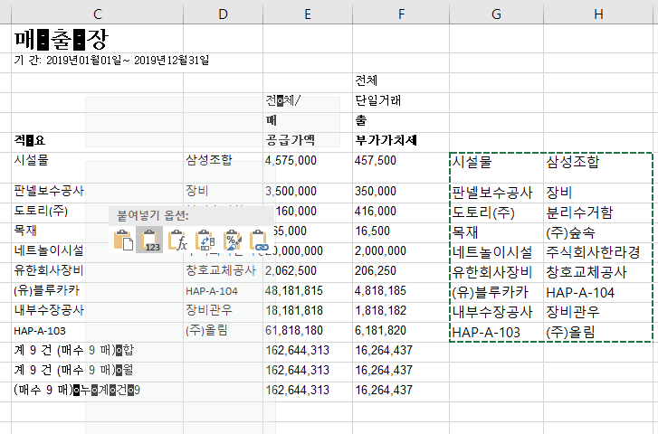 여기서! 붙여넣기 옵션 -> 값으로 선택해야 정상적으로 붙여지구요.
