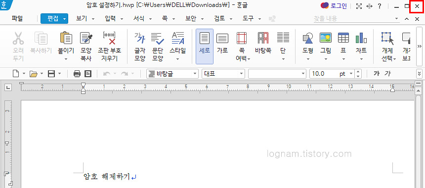 ▲ 우측 상단 종료 버튼 클릭 후 파일 실행하여 암호 해제 되어있는지 확인