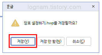 ▲ 한글 파일 실행하여 암호 설정되어 있는지 확인