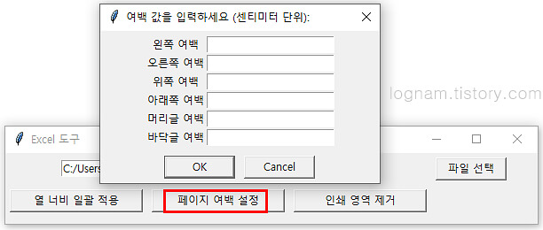 (44) 엑셀 인쇄 열 너비 여백 모든 시트 적용 프로그램