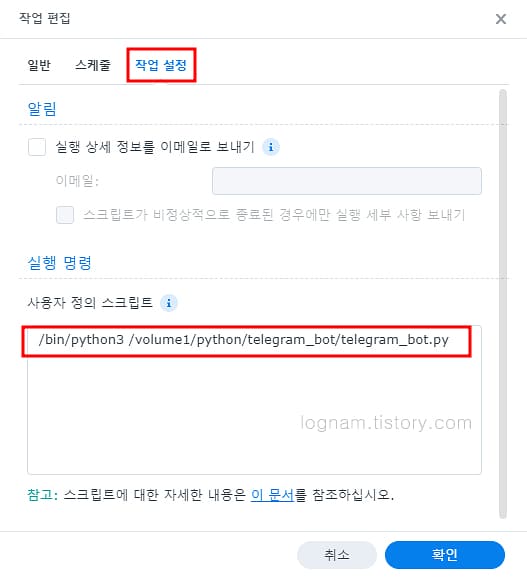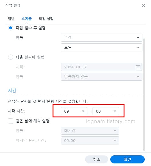 NAS 작업 스케줄러 설정