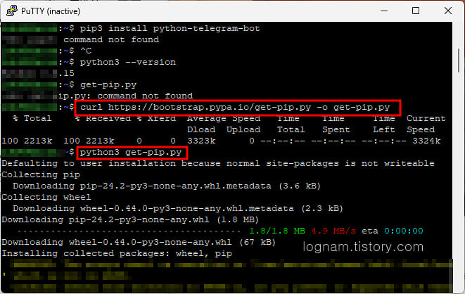 그리고 다시 python3 get-pip.py 설치를 하면 설치가 될 것입니다.
