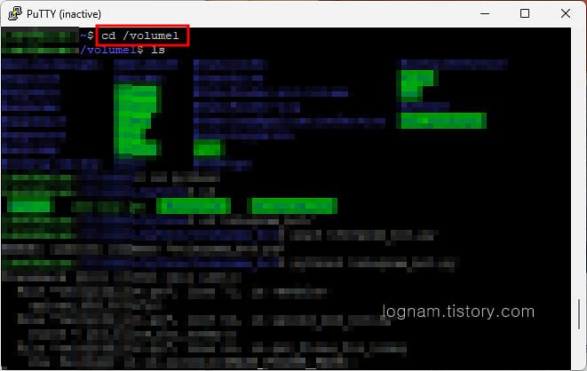 ▲ 볼륨이 1이므로 PuTTY에서도 볼륨 1로 이동해야 합니다.
