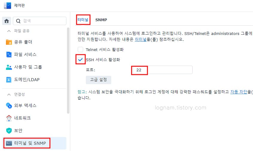 NAS서버 SSH 활성화