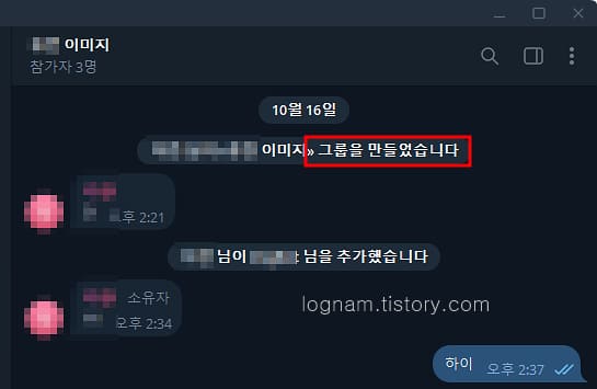 ▲ 텔레그램에 이미지를 받을 사람들을 모아 방을 하나 만듭니다.