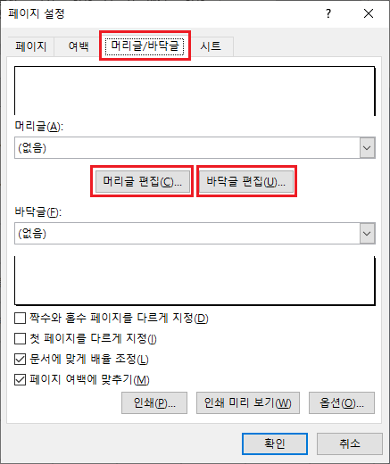 1. 머리글/바닥글 설정하기