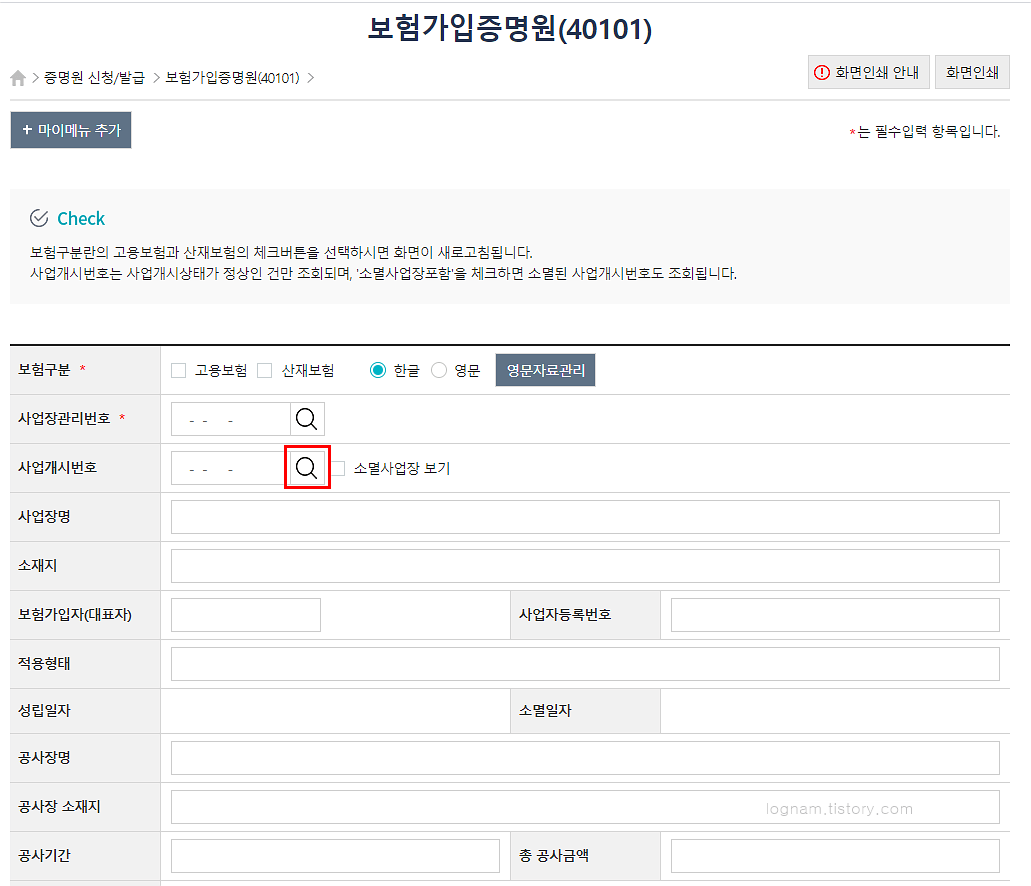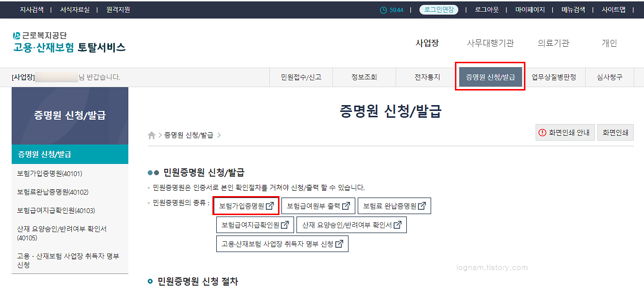 고용산재 보험가입증명원 발급하기